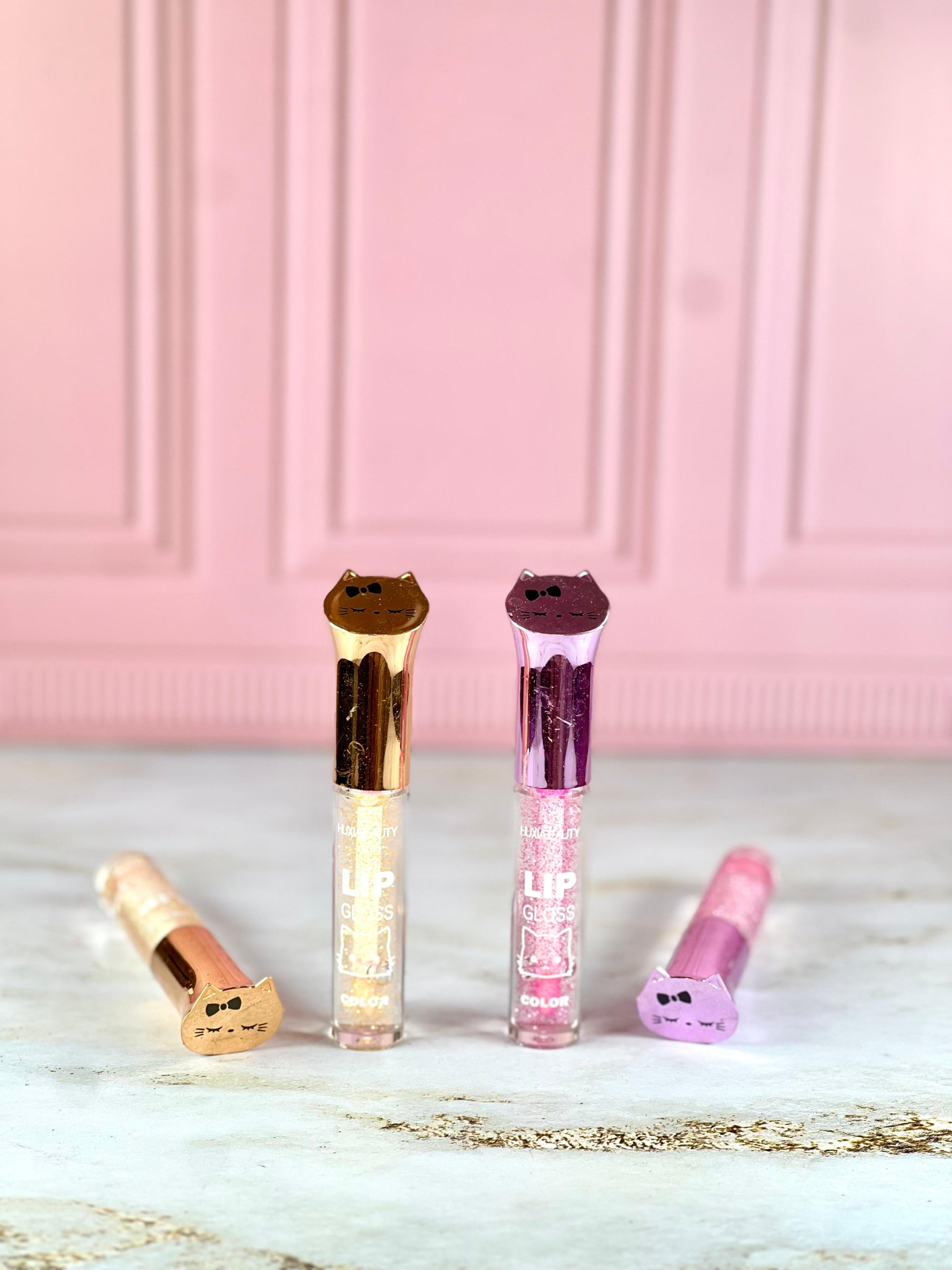 Brillos con tapa en forma de gatito y fórmula que aporta volumen, brillo y suavidad. ¡Un toque kawaii irresistible!